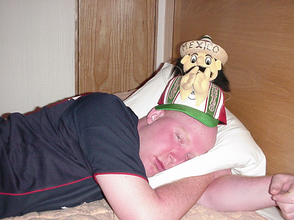 I started to drink after the game on the ride home, I had some catching up to do. I was having such a good time drinking, I didn't even realize we had reached our destination. Once we got back to the hotel room, we dropped off our stuff and headed out for a bite to eat. After that, we watched the replay of the game on Sansone's pc. He had brought some crazy electronic gizmos with him and one of them allowed him to TIVO the game from the Mexican cable onto his pc. They had some really fun sketches, one with Presidents Fox and Bush, the other involving claymation and the history between our two countries. When the replay whistle sounded, Joe was done for the night but the rest of us headed out to drink the night away. By the end of the night, I had no pesos left on me and somehow made it home not knowing where I was, Sansone had gotten pulled over by the Mexican police and Brent was singing anti-England songs to a bunch of English fellows. Win or lose vs Mexico, we are always going to have a good time.